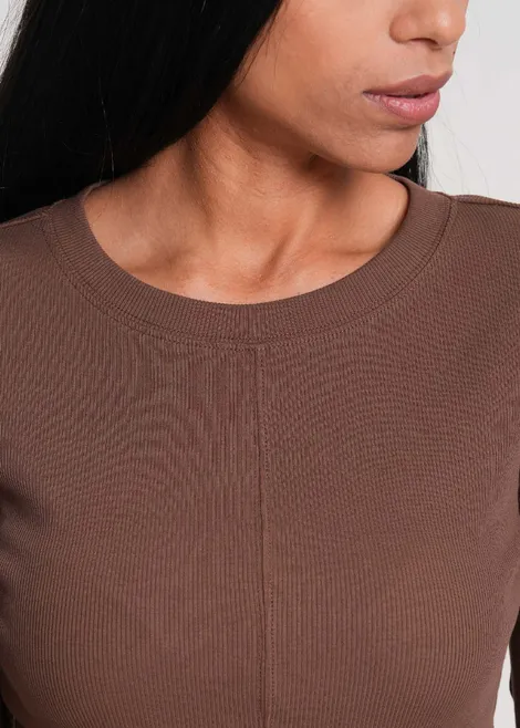 - Rundhalsausschnitt mit feiner Naht-Detailierung