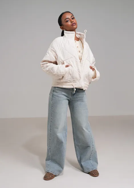 - Hoher Kragen und Kordelzug am Saum für optimalen Sitz